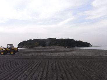 着いたら沖の島は海岸清掃中。