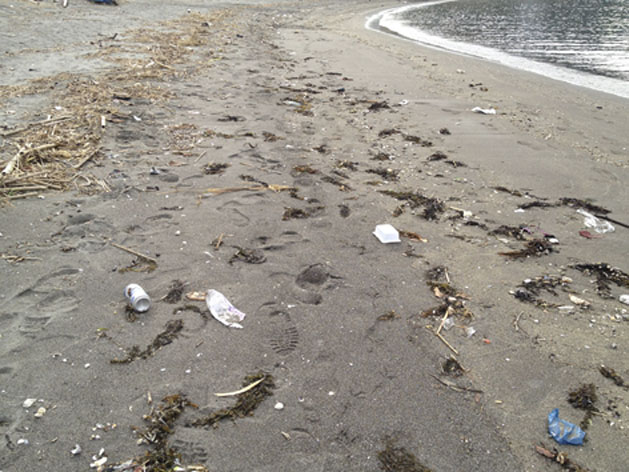 前日に大雨が降りいろんなものが流れ着いて汚れていたためです。