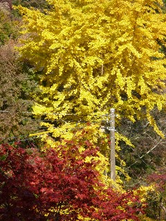 一番目を引くのは、残念ながら紅葉ではなく「銀杏」の大木でした。