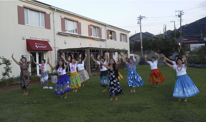レストランBUONOを飛び出し、芝生の上でHULA〜。