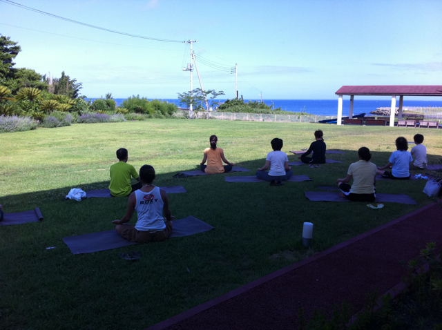AM7:30から「ASA YOGA」芝生で行います。朝食前の貴重な時間。