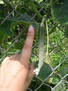人差し指サイズまで育ってきたキュウリを発見しました。