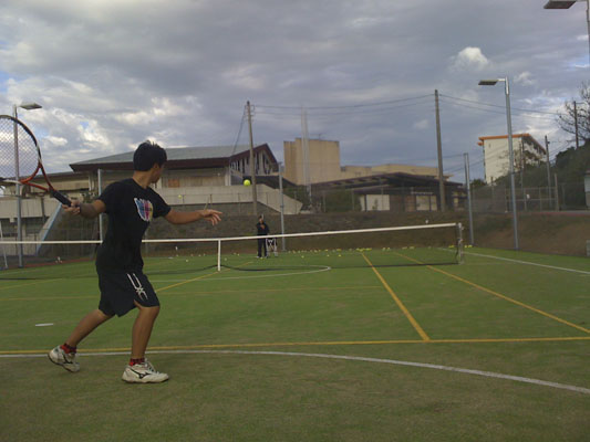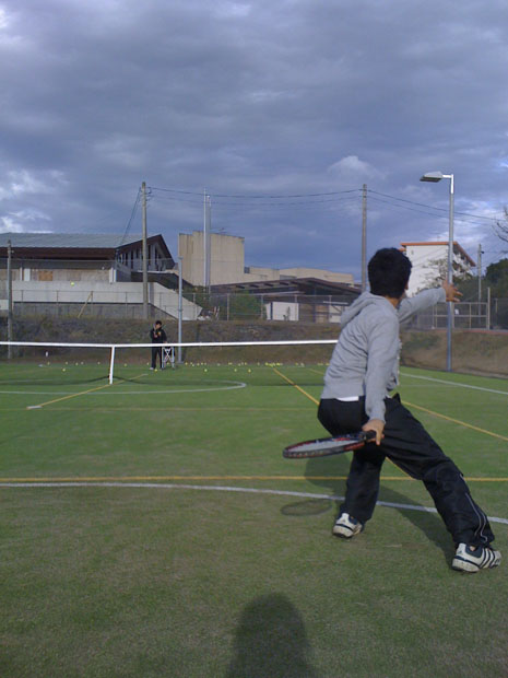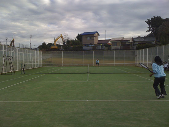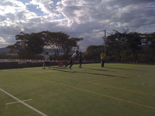 ギリギリ雨にはならず、スポーツするにはちょうどいい感じ、テニスコート&フットサルコートからは賑やかな声が聞こえています。