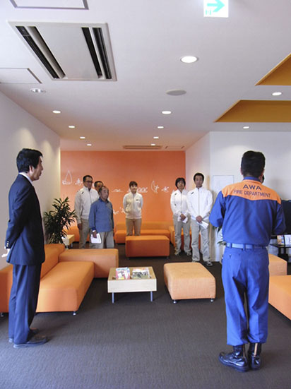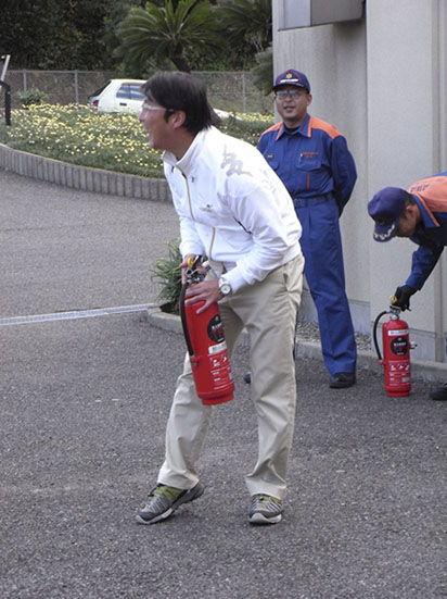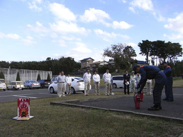 今日は西岬消防署のご指導のもと、火災発生時のための防災訓練を行いました。