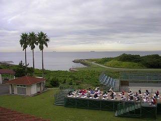 今朝はどんより曇り空、au旅ランのお客様は朝から元気にヨガしてます。10月に行われるベボニアビーチバレー・ファミリーオ館山カップの観客席で海を観ながら気持ちの良い汗を味わっています。